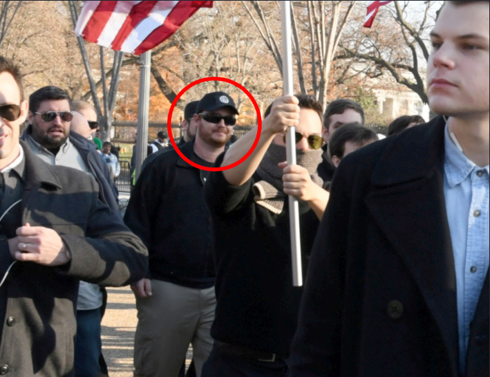 Neo-nazi Samuel Paarfus (known as “BLAMsamBLAM” on Discord) of the Richmond, Virginia area attended Unite the Right. In December, 2017 Paarfus wore a hat with the Traditionalist Worker Party symbol on it to a white nationalist protest led by Richard Spencer. In a Discord he posted a photo of himself and three associates performing a Nazi salute outside of a Buffalo Wild Wings restaurant.